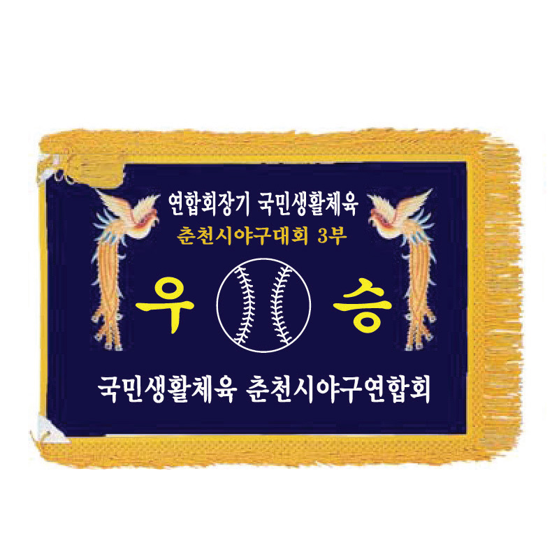 깃발-기계자수비로도 (곤색바탕/노랑수술) 135x90