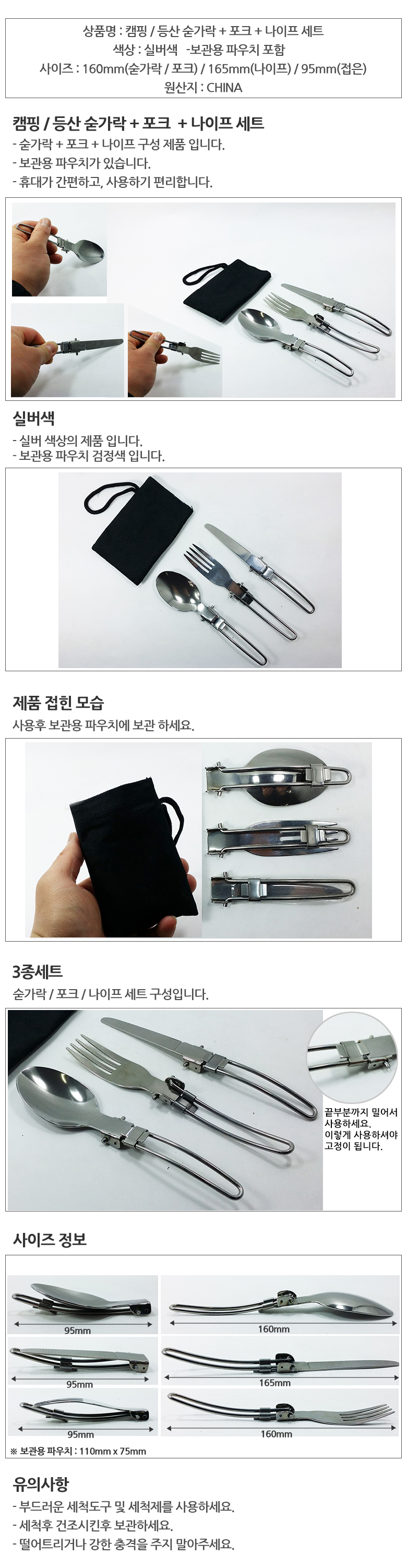 | 기타사항 | •숟가락, 포크, 나이프 •보관용 파우치 |