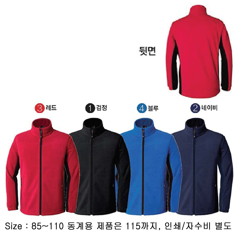 | 기타사항 | •폴리에스터 100%(저데니아 폴리스) ※아웃도어(바람막이,파카,패딩)/인쇄, 자수비별도/사이즈:85~110,동계용 제품은 115까지. |